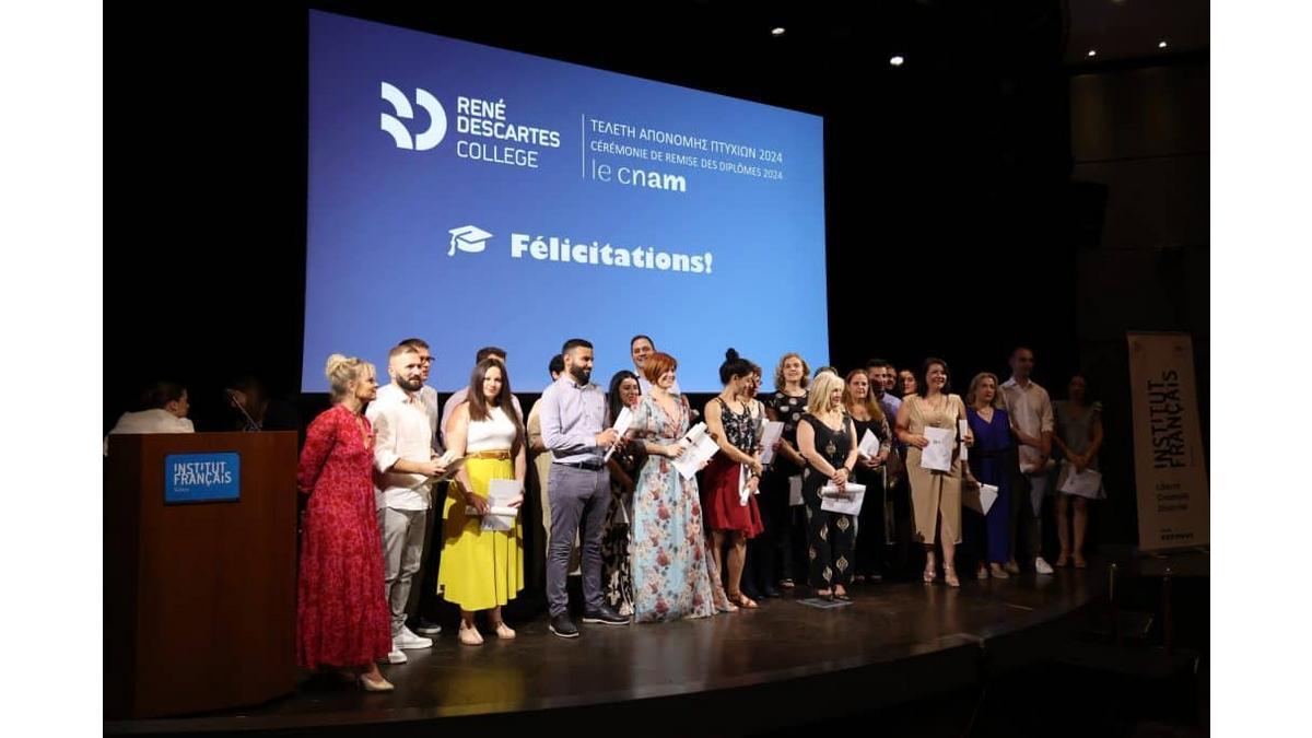 Vendredi 28 juin 2024 a eu lieu à l'Institut français de Grèce la cérémonie de remise des diplômes du Conservatoire national des arts et métiers (CNAM) par le René Descartes College. En présence de 300 invités, personnalités du monde universitaire, des affaires et de la politique, ainsi que de leur famille et amis, les diplômés ont célébré la fin de leurs études lors d'un événement émouvant.