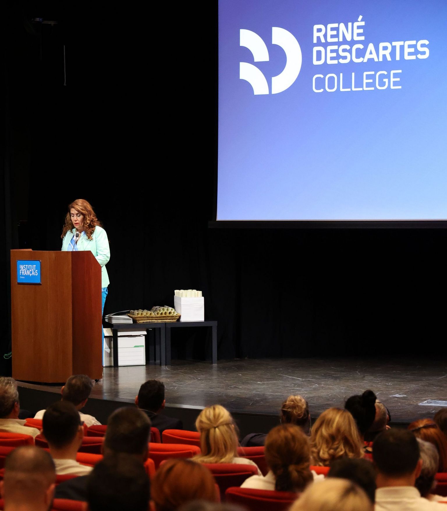 À son tour, Mme Maria-Christina Chatzinikolaou, Directrice du Marketing Digital et des Relations Clientèles d'Air France et représentante de la Chambre de Commerce FrancoHellénique, a félicité les étudiants et a mentionné en particulier le memorendum en cours d'établissement entre la Chambre de Commerce Franco-Hellénique et le René Descartes College, qui visera à renforcer les compétences académiques et professionnelles des membres de la communauté d'affaires franco-hellénique, et au-delà.