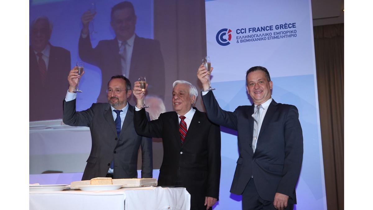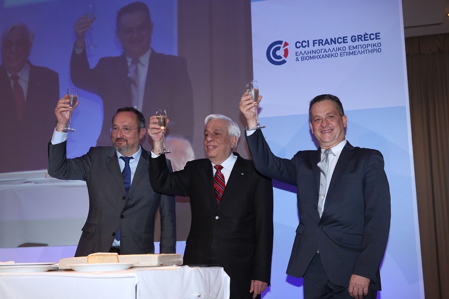 Le dîner organisé le 24 janvier à l’hôtel Hilton (Athènes) par la Chambre de Commerce France-Grèce en l’honneur de S.E. le Président de la République hellénique, Prokopios Pavlopoulos, inaugure le programme évènementiel prévu pour 2017. Cette première soirée qui s’est déroulée en présence de S.E. l’Ambassadeur de France, Christophe Chantepy, de ministres grecs, de membres du corps diplomatique, de représentants de partis politiques et d’un grand nombre d’entrepreneurs grecs et français confirme, une fois encore, l’excellente coopération entre les deux pays, sur le plan économique, commercial et culturel et élargit les perspectives de développement.