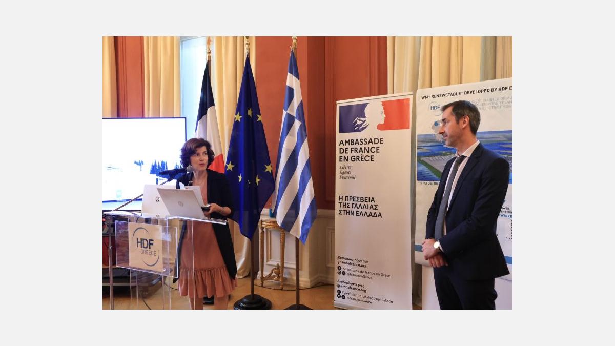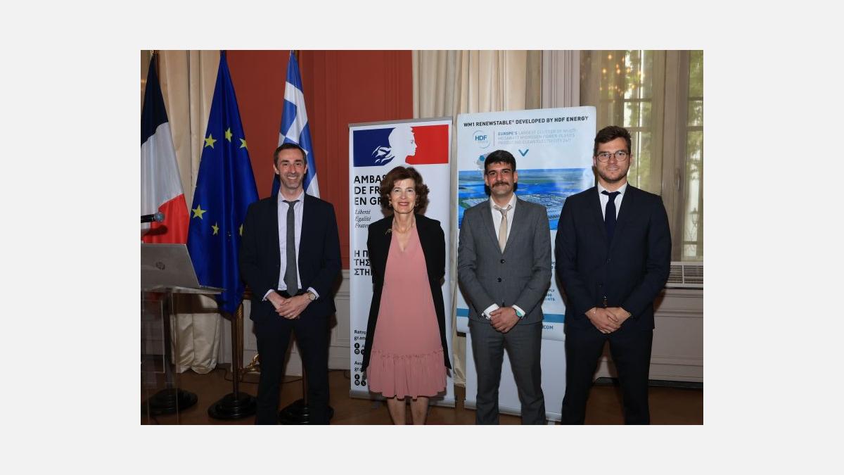 Athens – May 27, 2024 – HDF Energy (Hydrogène de France), a pioneer in large-scale green hydrogen infrastructure and high-power fuel cell manufacturing, announces the official launch of its Greek subsidiary, HDF Greece. The announcement was made at a dedicated ceremony organized by HDF Energy and its representative, Gilles Bouder, VP BD EMEA, Charlie Vrignon, BDM Southern Europe, and Georgios Exarchou, BDM Greece based in Athens. The event, which took place on May 21, 2024, was hosted by the French Ambassador in Greece at the French Residence, who expressed delight in celebrating the first French company branch opening since her mandate began in September 2023. The event gathered around 30 people from different companies and local stakeholders of the energy ecosystem. HDF Greece has also become a member of the French-Greek Chamber of Commerce and Industry (CCI) and its energy committee.