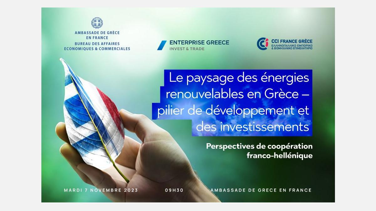 Forum d’Affaires : « Le paysage des énergies renouvelables en Grèce – pilier de développement et des investissements. Perspectives de coopération franco-hellénique », Paris, le 7 novembre 2023.