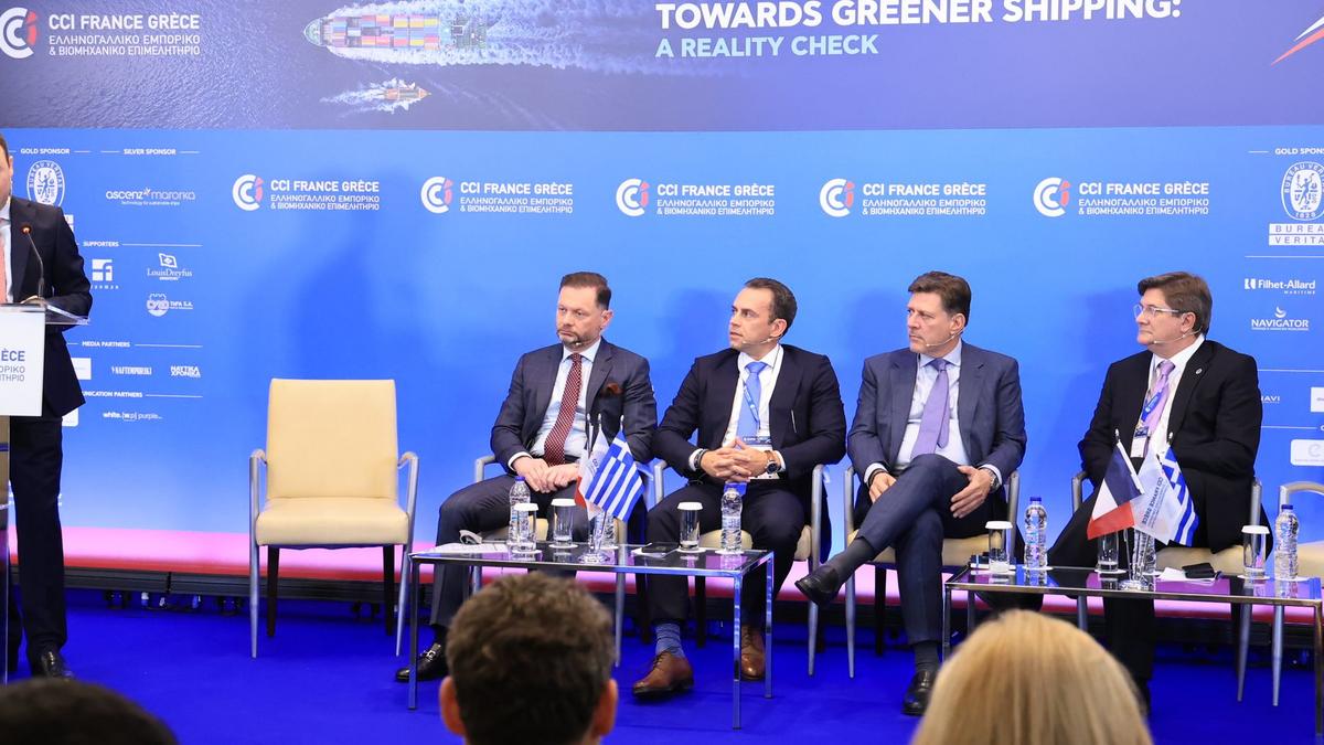 Le premier panel a réuni M. Panos Xenokostas, Président et PDG de Onex Shipyards & Technologies, ainsi que Président de l'Union des Chantiers Navals Grecs, M. Miltiadis Varvitsiotis, PDG des Chantiers Navals de Skaramanga, M. Yiannis Dragnis, PDG de Goldenport Group, M. Farid Trad, Vice-Président Bunkering & Energy Transition chez CMA CGM, et M. George Xiradakis, Président de l'Association des Cadres Bancaires et Financiers du Secteur Maritime Grec. La table ronde a été modérée par M. Yannick Le Gourières, Directeur Général, Responsable Shipping & Offshore Finance-Americas, Credit Agricole CIB.
