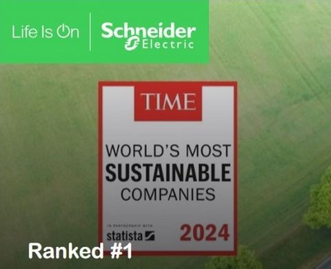 Schneider Electric, the leader in the digital transformation of energy management and automation, has topped the "World's Most Sustainable Companies for 2024" list by Time magazine and Statista. This recognition reflects Schneider Electric's ambitious goals to reduce its own emissions, but also the company’s commitment to helping its customers to become more energy efficient and reduce their emissions.