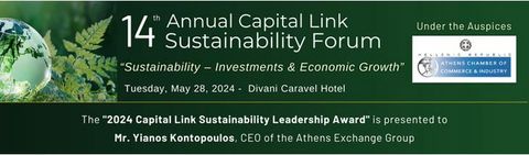The "2024 CAPITAL LINK SUSTAINABILITY LEADERSHIP AWARD" will be presented to Mr. Yianos Kontopoulos, CEO - Athens Exchange Group.