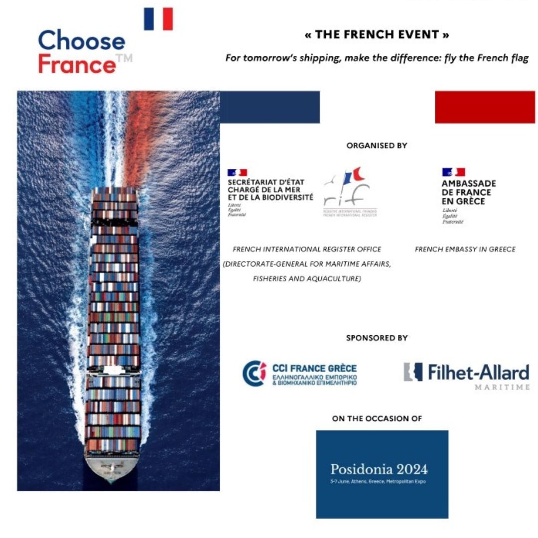 "The French Event" entitled, "For tomorrow's shipping, make the difference : fly the french flag" with the support of the CCI France-Grèce.