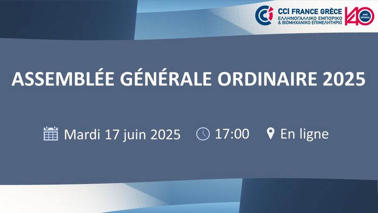 L’Assemblée Générale Ordinaire 2025 de la Chambre de Commerce et d' Industrie France-Grèce s'est tenu le mardi 17 juin 2025 à 17h00, sous forme de…