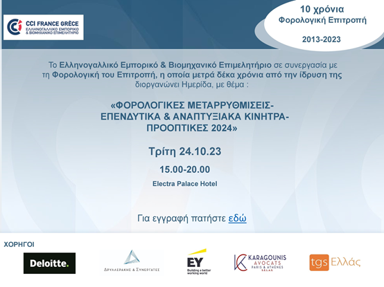 ΦΟΡΟΛΟΓΙΚΗ ΗΜΕΡΙΔΑ : «Φορολογικές μεταρρυθμίσεις - επενδυτικά και αναπτυξιακά κίνητρα – προοπτικές 2024»