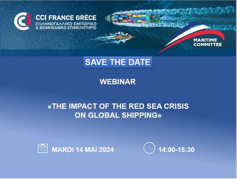 Το Ελληνογαλλικό Επιμελητήριο CCI France Grèce διοργανώνει την Τρίτη 14 Μαΐου 2024, σε συνεργασία με τη Ναυτιλιακή του επιτροπή, webinar με θέμα :