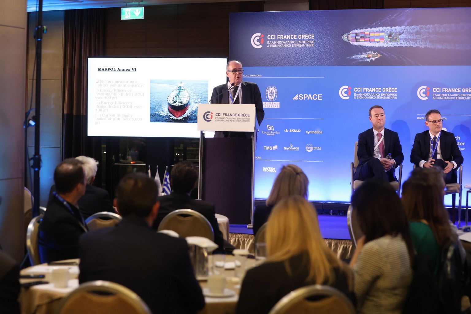 Μεταξύ των ομιλητών, οι κκ. Phillipe Louis Dreyfus, Πρόεδρος της Louis Dreyfus Armateurs SAS και Πρόεδρος της Ναυτιλιακής επιτροπής του Επιμελητηρίου, Matthieu Berrurier, Πρόεδρος της French Union for Maritime Transport Insurance Brokers, Xavier Rebour, Διευθυντής της Ένωσης France Cyber Maritime, Απόστολος Καμαρινάκης, Αντιπρόεδρος της Ένωσης Λιμένων Ελλάδας καθώς κι εκπρόσωποι ελληνικών και γαλλικών εταιρειών, όπως η Βureau Veritas, Space Hellas, Naval Group, Thales Hellas, Skuld Hellas, Publicis Consultants.