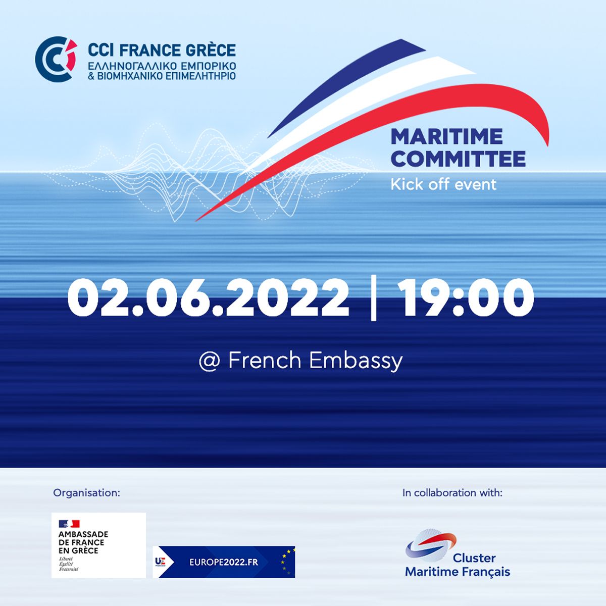 Ο πρόεδρος του Εμπορικού και Βιομηχανικού Επιμελητηρίου Γαλλίας και Ελλάδας, κ. Laurent Thuillier, και ο πρόεδρος του Cluster Maritime Français, κ. Frédéric Moncany de Saint-Aignan, δήλωσαν ότι η ιδέα της δημιουργίας αυτής της Επιτροπής προέκυψε από πολύ σημαντικά κοινά επιτεύγματα μεταξύ των δύο χωρών.