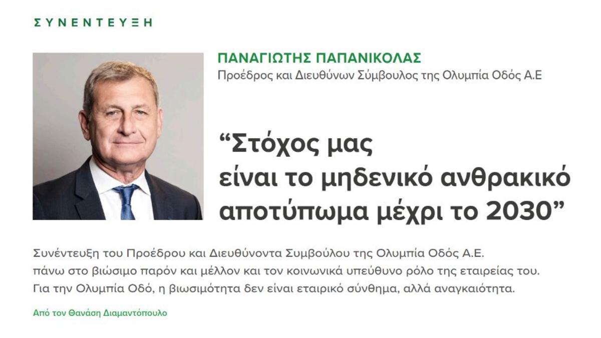ΣΥΝΕΝΤΕΥΞΗ ΤΟΥ ΠΡΟΕΔΡΟΥ & ΔΙΕΥΘΥΝΟΝΤΑ ΣΥΜΒΟΥΛΟΥ ΤΗΣ ΟΛΥΜΠΙΑ ΟΔΟΣ Α.Ε., κ. ΠΑΝΑΓΙΩΤΗ ΠΑΠΑΝΙΚΟΛΑ, ΣΤΗΝ ΕΙΔΙΚΗ ΕΚΔΟΣΗ SUSTAINABILITY LEADERS TΗΣ BOUSSIAS