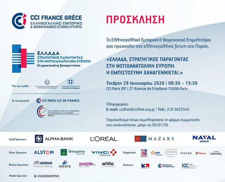 ΔΕΛΤΙΟ ΤΥΠΟΥ Παρίσι, 30 Ιανουαρίου 2020 Επενδυτικό forum στο Παρίσι Παράλληλα με την επίσημη επίσκεψη του Πρωθυπουγού στο Παρίσι, πραγματοποιήθηκε…