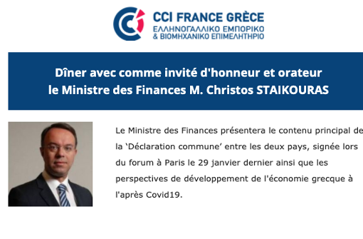 Dîner avec comme invité d'honneur et orateur le Ministre Des Finances M. Christos STAIKOURAS