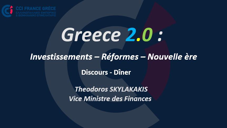 La Chambre de Commerce et d'Industrie France Grèce organise un dîner avec comme invité d’honneur et orateur le Vice-Ministre des Finances, M. Theodoros Skylakakis, avec comme sujet de discussion :