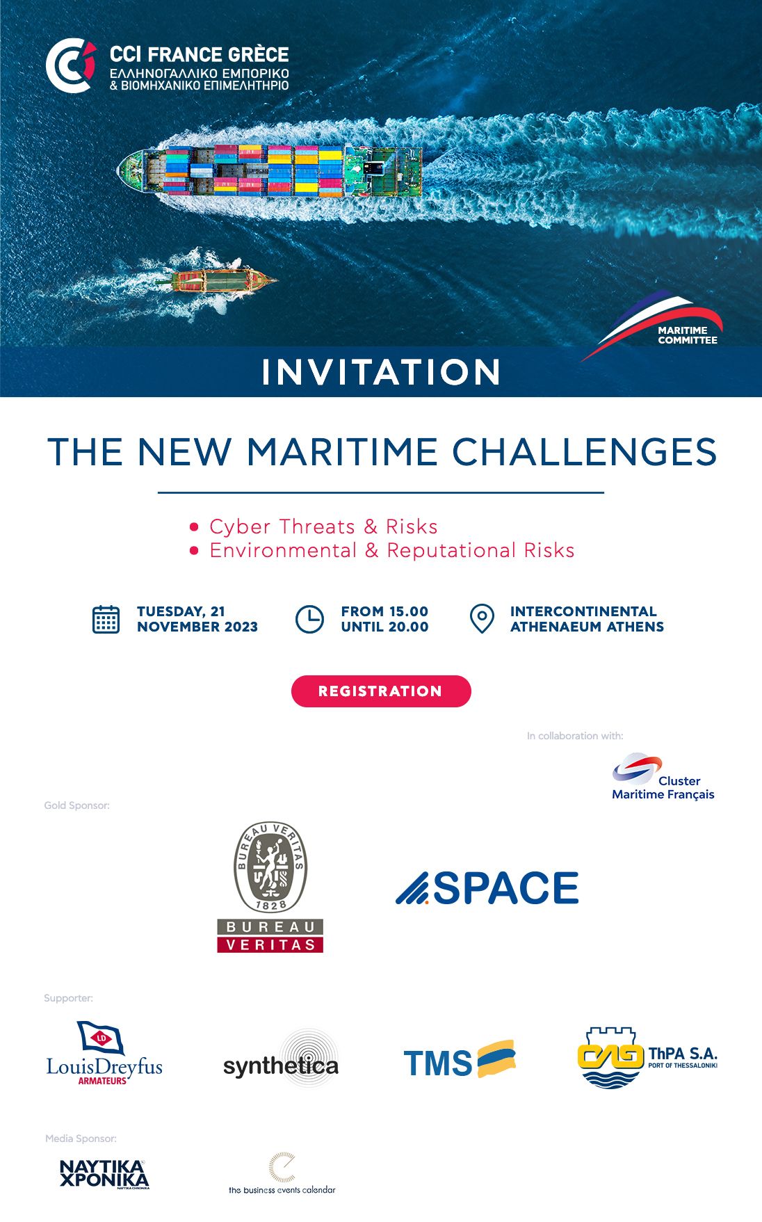 Le forum du Comité Maritime, sous la présidence de M. Philippe LOUIS DREYFUS, se déroulera le mardi 21 novembre 2023, de 15h00 à 20h00, à l’hôtel Athenaeum Intercontinental à Athènes, sur le thème :