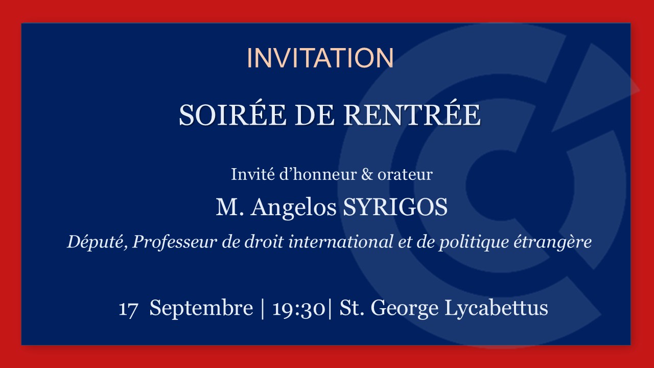 La Chambre de Commerce et d’Industrie France-Grèce a le plaisir d'organiser sa Soirée de Rentrée, qui marquera le début de la nouvelle période pour la Chambre et ses membres,