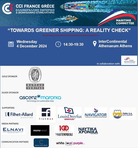 The French-Hellenic Chamber of Commerce & Industry (CCIFG) is organizing the 3rd Forum of its Maritime Committee, chaired by Mr. Philippe LOUIS DREYFUS, on December 4th, 2024, at the Athenaeum Intercontinental Hotel in Athens, from 14:30 to 19:30, entitled: